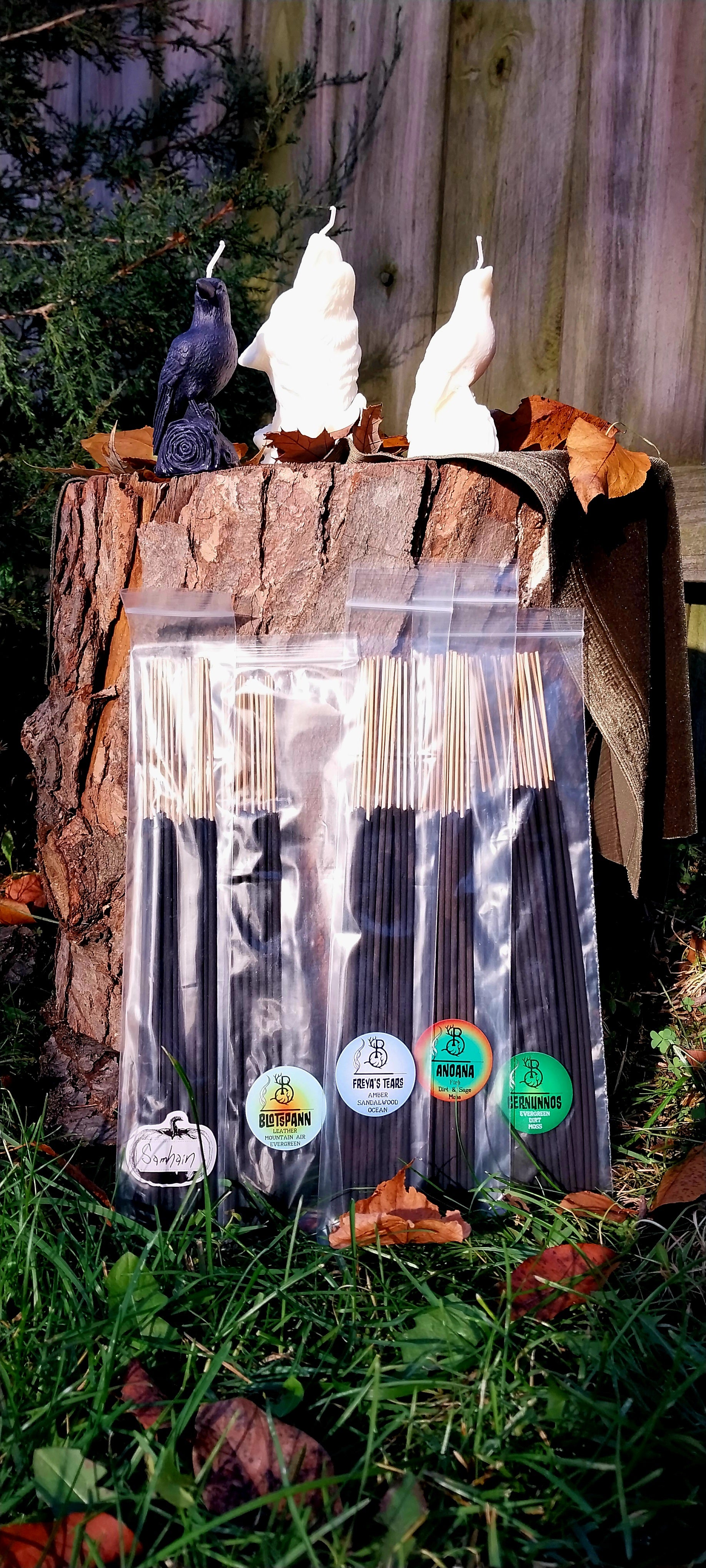 Each blend of scents is mixed by hand, poured, soaked and dried onto black charcoal incense sticks, which helps them be a little less smokey then the other type of incense sticks out there.